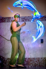Through collaboration with other circus arts collectives such as Cirquonscient, Dragon's Ire and A Beautiful Smack to the Head we offer school shows and a variety of crowd animation options including: fire dancing, acrobatics, stilt walking and, LED glowing: Butterfly Dancers, pixel whips, hula hoops, poi, devil sticks, levitation wands, and more.